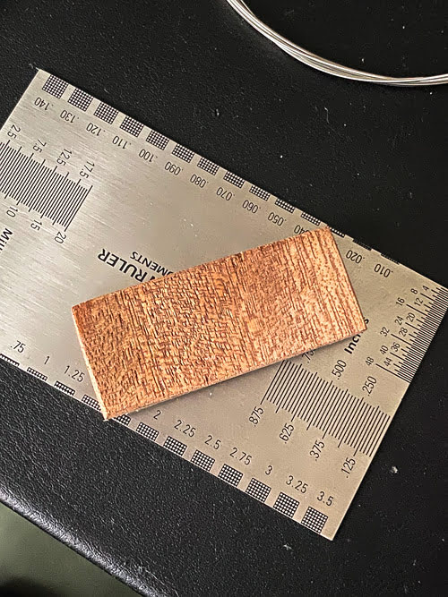 The block was cut from some Sepele offcuts I got on eBay cheaply several years ago. I found a strip about 7.5mm thick and cut off a piece to the size needed. Due to these being rough sawn they aren’t very even or parallel, so it took a few cuts to get a pice that was thick enough the whole width.